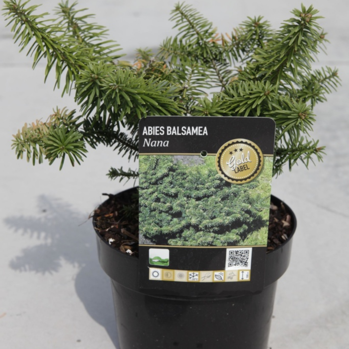 Abies balsamea, commonly knows as Balsam Fir, is native to moist woods and bottomlands. It is a primary component of the boreal forest that stretches across Canada. This is a dwarf conifer that eventually grows to 50cm in both height and width.