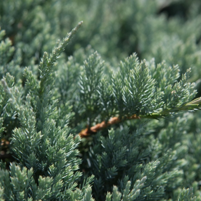 Juniperus Horizontalis Blue Chip (Creeping Blue Juniper) is a low growing spreading evergreen conifer. It has fine textured silver blue foliage the tips turn to purple in the winter.