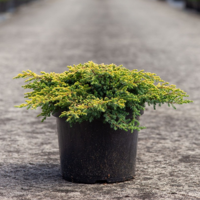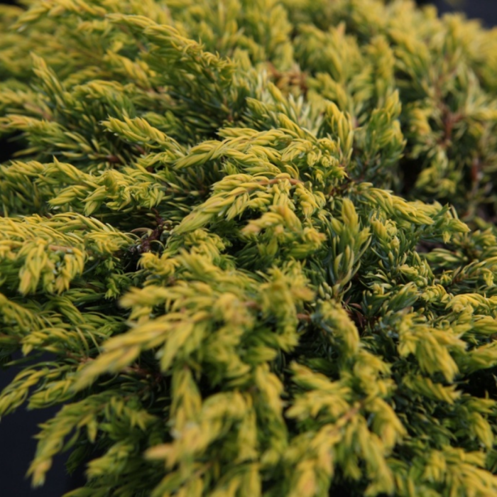 Juniperus Chinensis Goldschatz is a lovely evergreen, low growing, spreading conifer with golden foliage.
