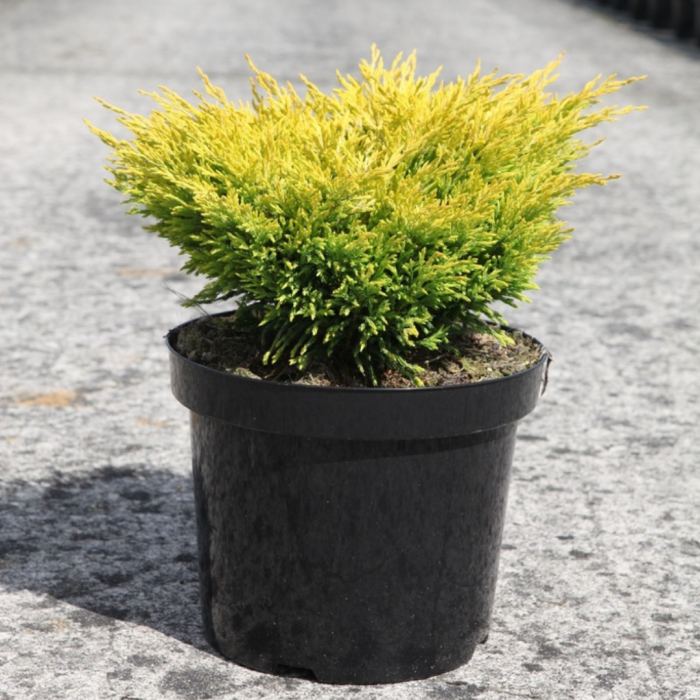 Juniper Horizontalis Lime Glow is a lovely low growing conifer, the growth in the spring emerges in a lime green shade and gradually changes as we head towards autumn and winter to a bright bronze shade. This plant is perfect for providing groundcover and an interest in colour within a bed.