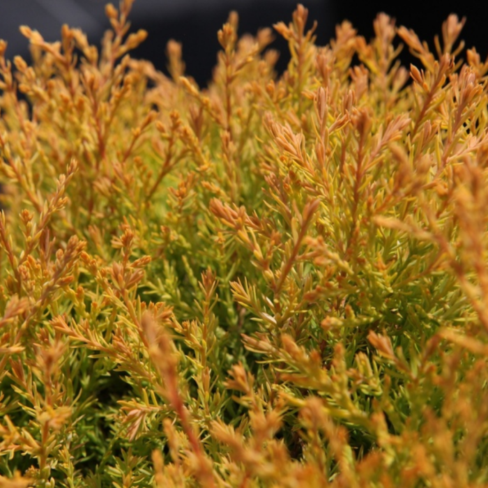 Thuja Occidentalis Rheingold is a slow growing conifer that makes a small squat conical shaped tree. It has brassy gold stringy type foliage becoming orange toned during the winter months. It is ideal for the smaller garden and due to its unusual colour makes an excellent feature plant.
