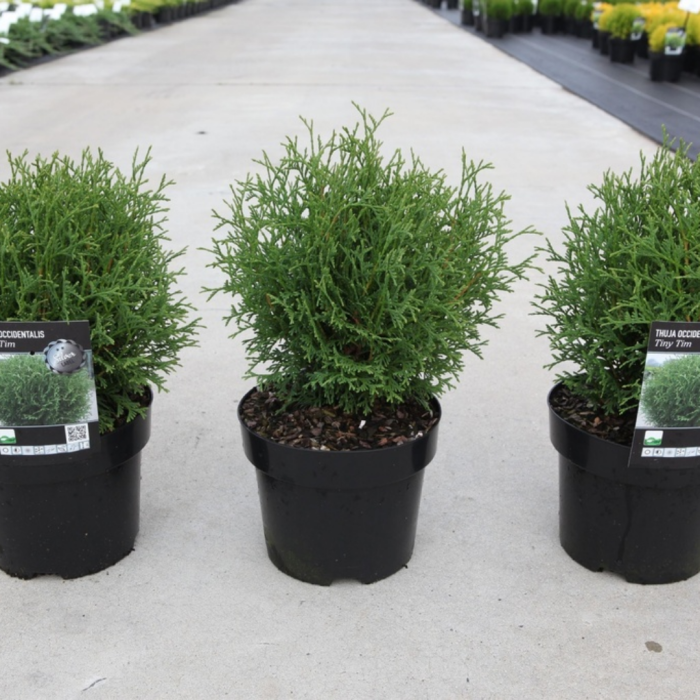 Thuja Occidentalis Tiny Tim is a slow growing domed shaped coniferous plant. It has fresh green coloured foliage in the spring and summer, which develops a darker tinge during the winter months.