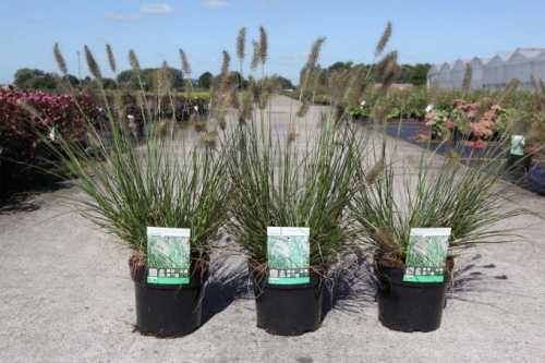 Pennisetum Alopecuroides Hameln Chinese Fountain Grass is a clump-forming perennial grass with arching linear leaves and panicles of bristly purple-tinged flower spikes in late summer.