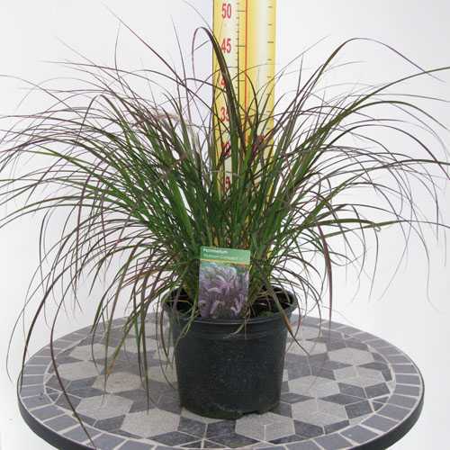 Pennisetum Setaceum Rubrum Compact (Purple Fountain Grass) is an attractive purple/green ornamental grass that has a compact habit. It has attractive flower plumes from July to October. This grass is not a hardy grass in most areas but can be wintered indoors.