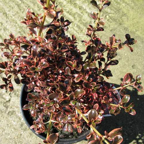 Coprosma Fire Burst is an evergreen shrub with glossy dark green-orange foliage that changes to red in autumn which creates all year round interest. Perfect as a feature plant in a border or as a patio plant in a container.