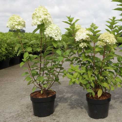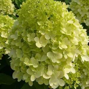 Hydrangea Paniculata Limelight This is a deciduous shrub with dark green leaves. From late summer to mid-autumn it produces cone shaped flowerheads of lime-green to creamy-white florets.