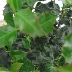 Ilex Meservae (Holly) is an evergreen shrub with shiny green variegated leaves. They leaves are serrated around the edge making them a great shrub for creating a hedge to deter intruders. It produdes berries in the Autumn and can be pruned into many shapes.