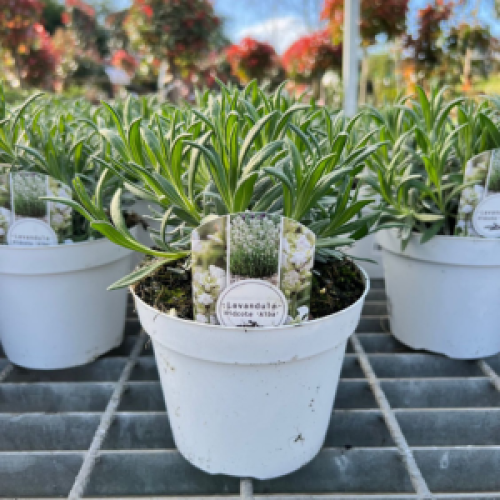 Lavender Angustifolia Hidcote Alba is a highly fragrant hardy shrub/perennial plant. It has dense silver needle like foliage with tall white scented flowers heads on tall stems.