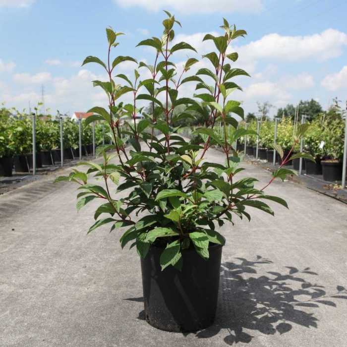 Viburnum Bodnantense Charles Lamont is an upright deciduous shrub. It is renowned for its fragrant clusters of pink flowers that adorn the bare branches of this shrub from December to February.